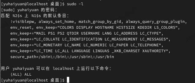 注意:sudo命令可以临时获取root权限,使用权限是在/etc/sudoers文件中配置的使用者。