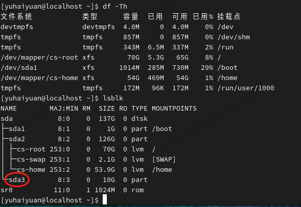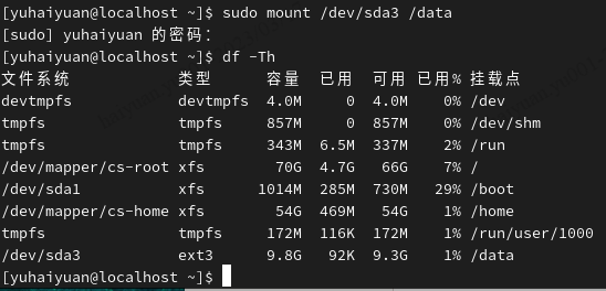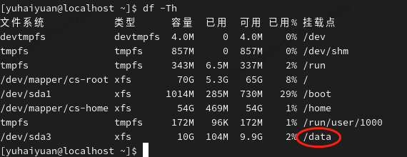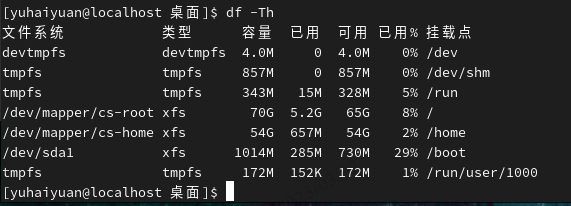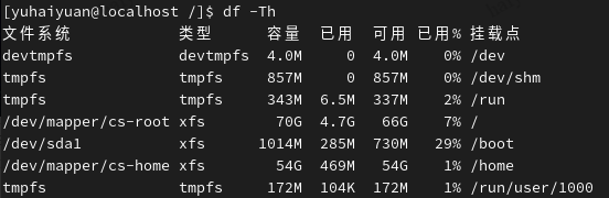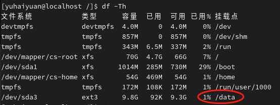 -h以人们习惯的单位显示文件系统的硬盘使用情况