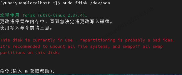 fdisk:磁盘分区表操作工具