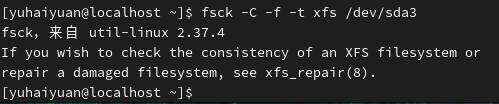 答:fsck命令不支持检查修复xfs格式的文件系统。