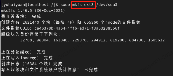mkfs:磁盘格式化