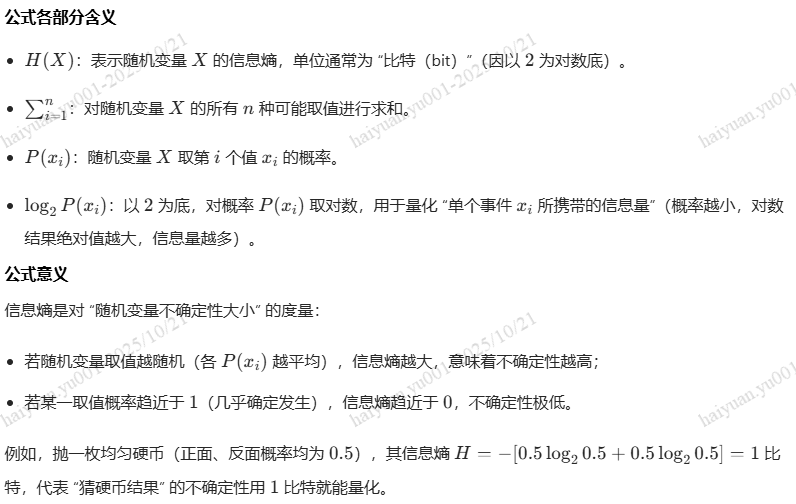 信息熵:信息是系统有序程度的度量,表现为负熵,计算公式如下:(单位比特/bit)