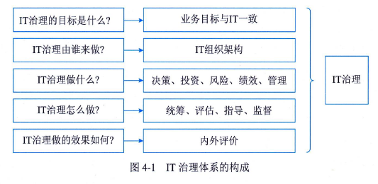 - 建立组织的IT治理实施框架,明确实施方法和过程