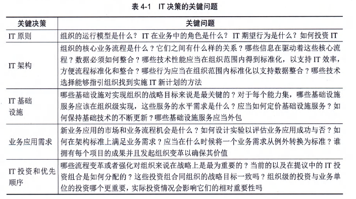- IT治理内容:决策、投资、风险、绩效和管理等